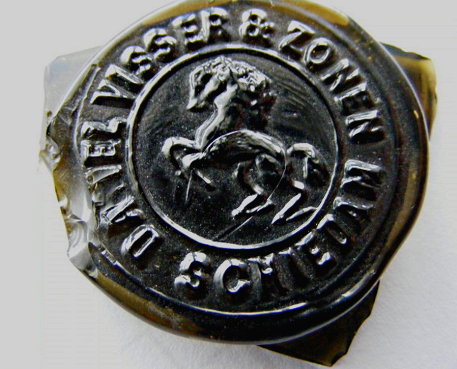 Seal only of a classic gin bottle. Trade Mark is DE GRAAUWE HENGST : THE GREY STALLION.