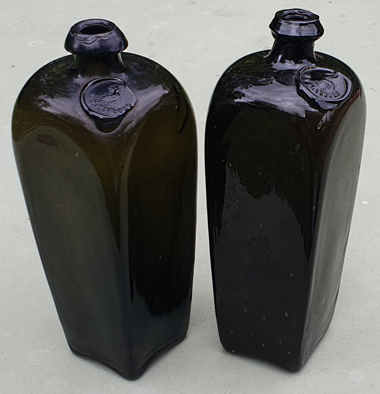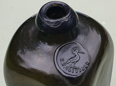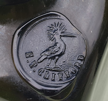 ![]() I am privileged to have in my collection the 2 featured E.T. CLIFFORD gin bottles on this page. The left bottle advertises a HOOPOE bird in the seal and the bottle on the right advertises a STORK feeding 3 young birds. Enthusiasts will recognize that these birds are also Trade Marks of gin distiller J. VAN DER VALK & Co, so it begs the question as to what connection existed between the 2 companies utilising the same Trade Marks. Unfortunately, there are no records or information available at this stage to verify any relationship between the companies. |